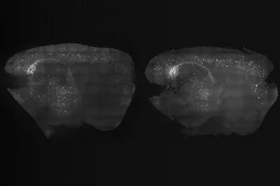 这种非侵入性治疗通过诱导称为γ振荡的脑电波起作用,也大大减少了这些小鼠大脑中发现的淀粉样斑块的数量。斑块在大脑的大片区域被清除,包括对学习和记忆等认知功能至关重要的区域。